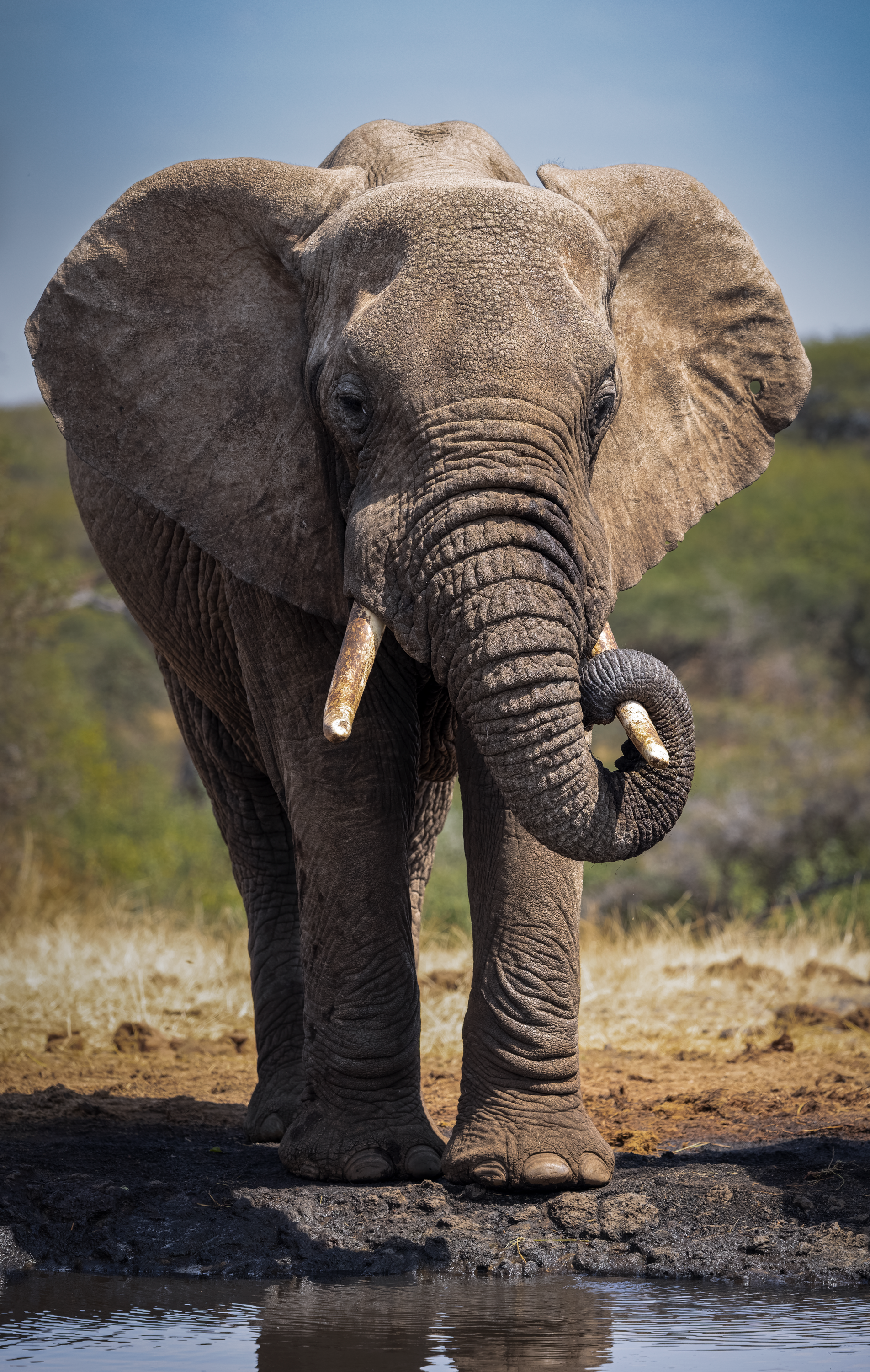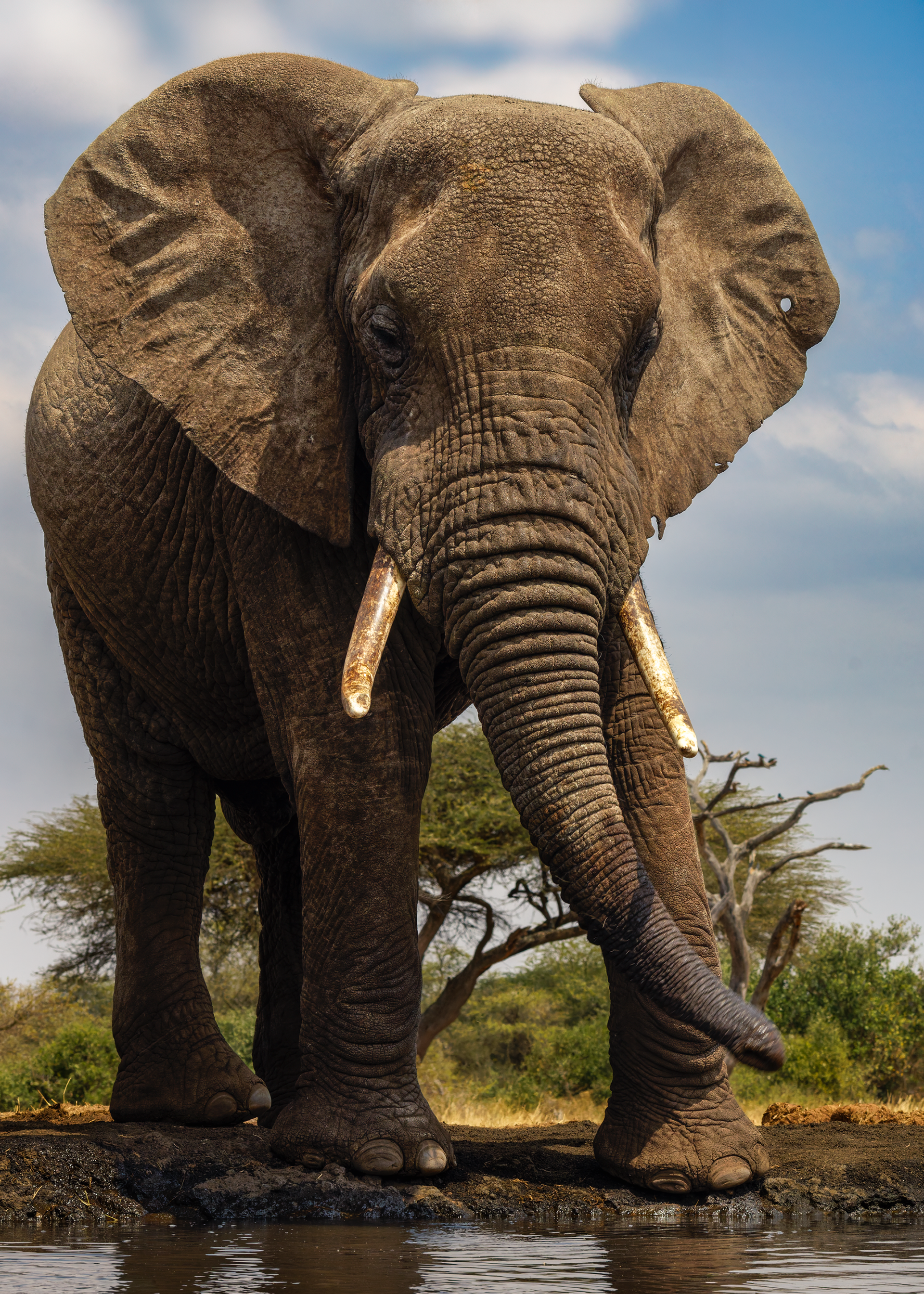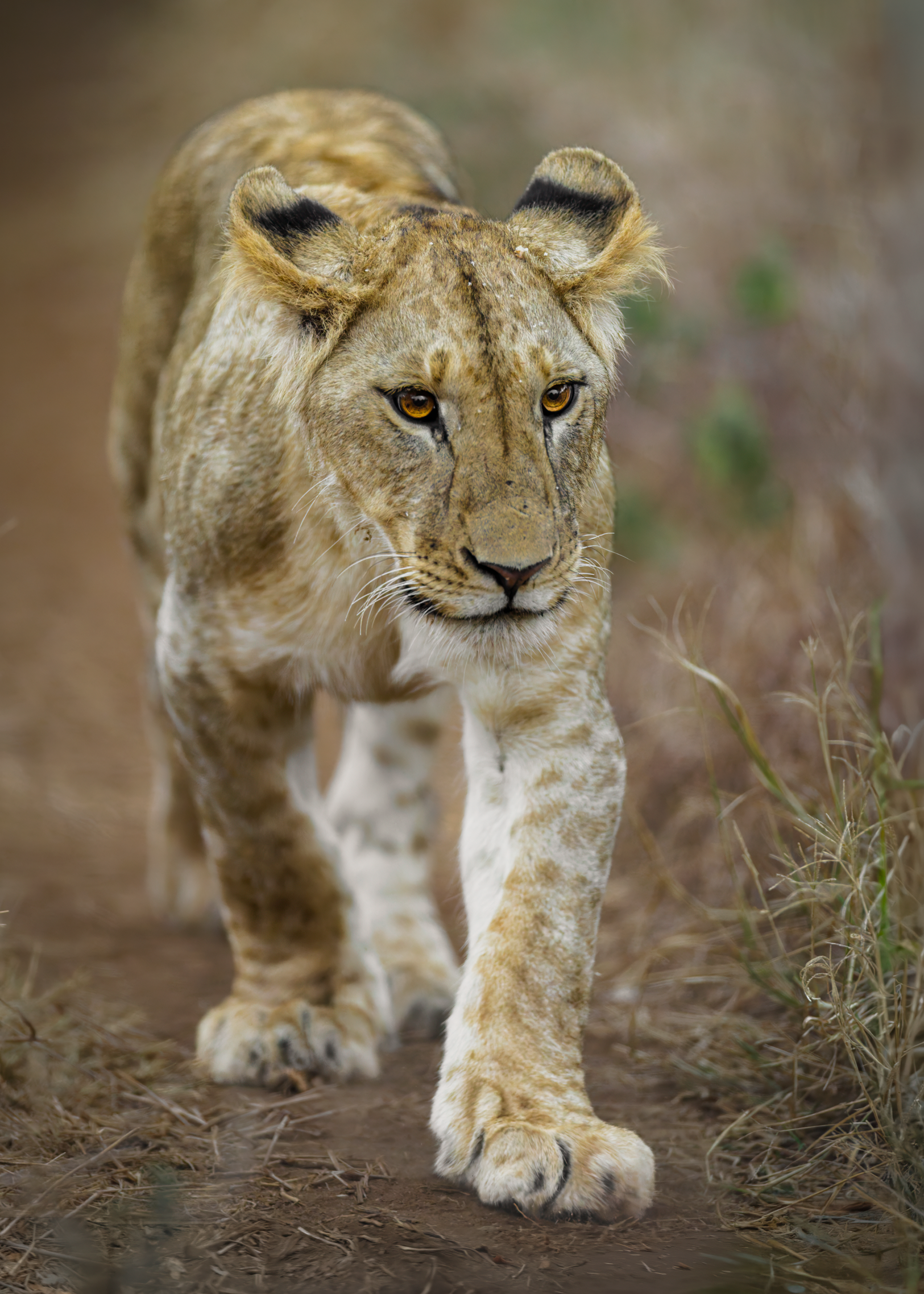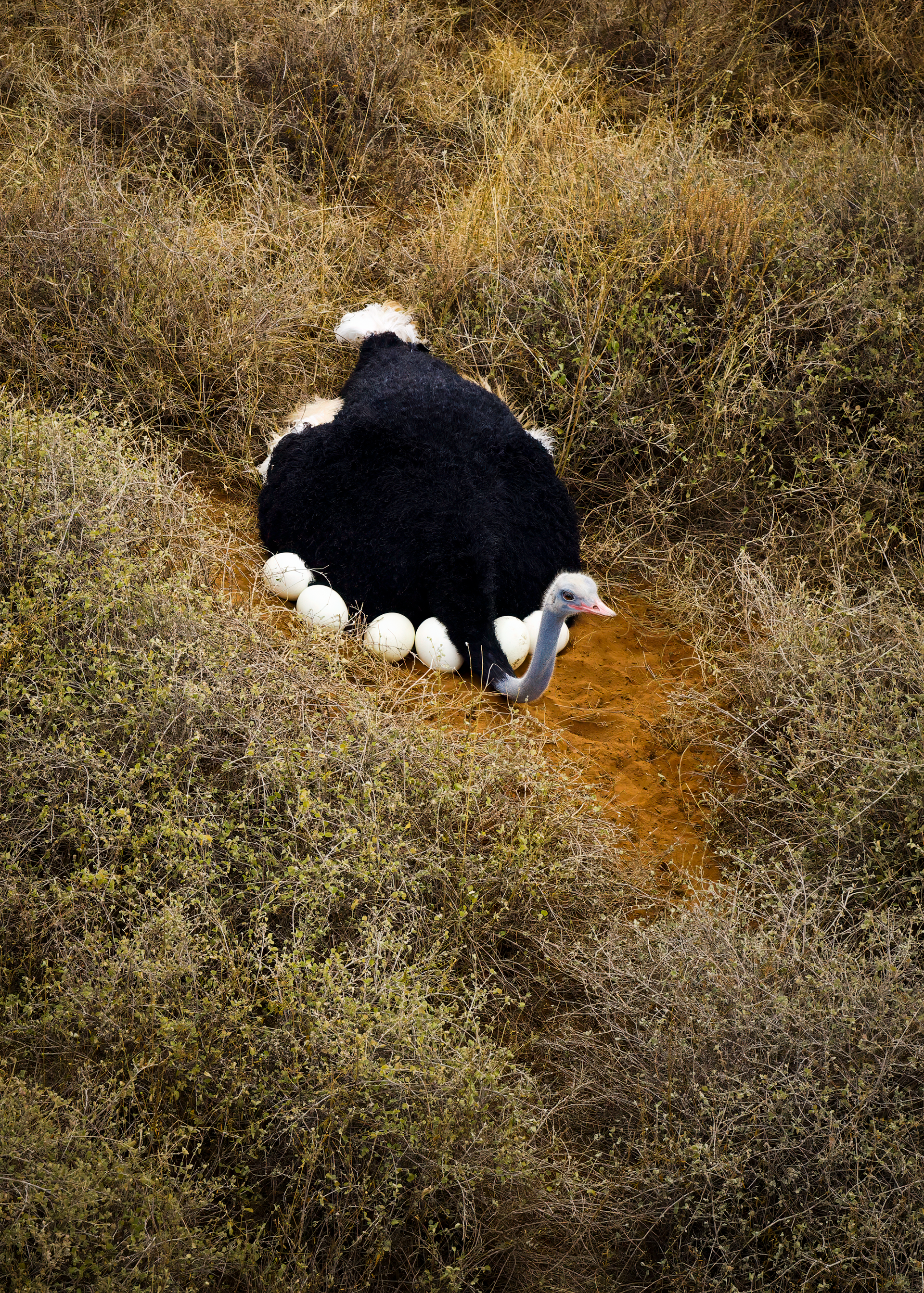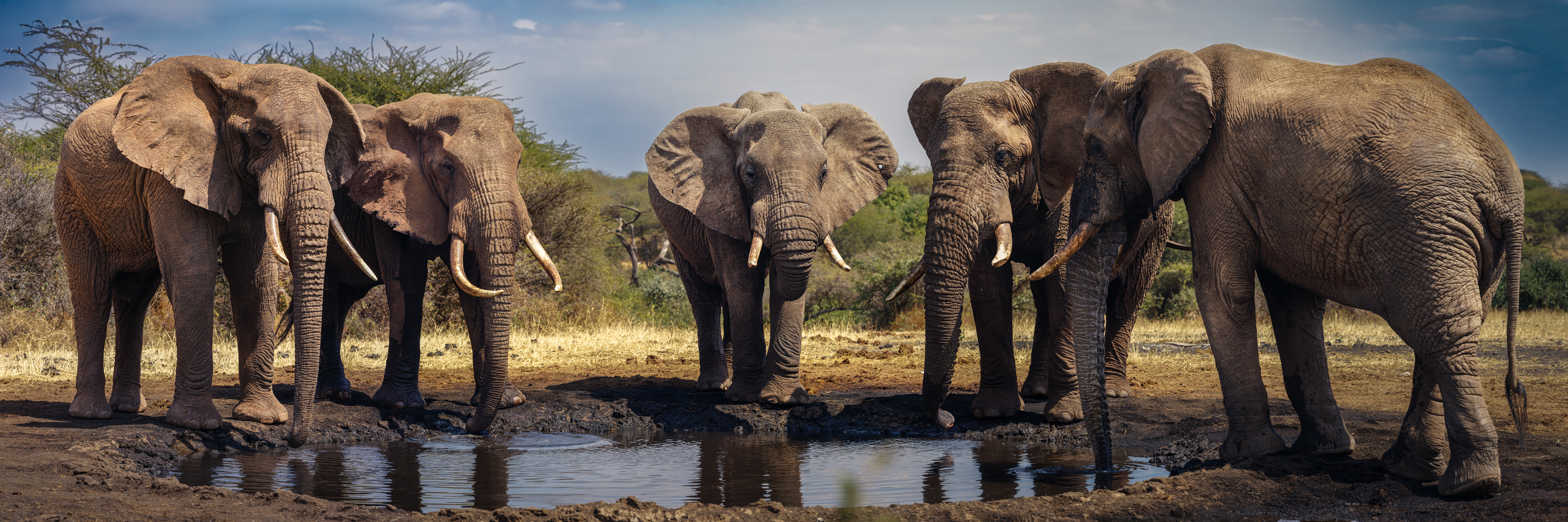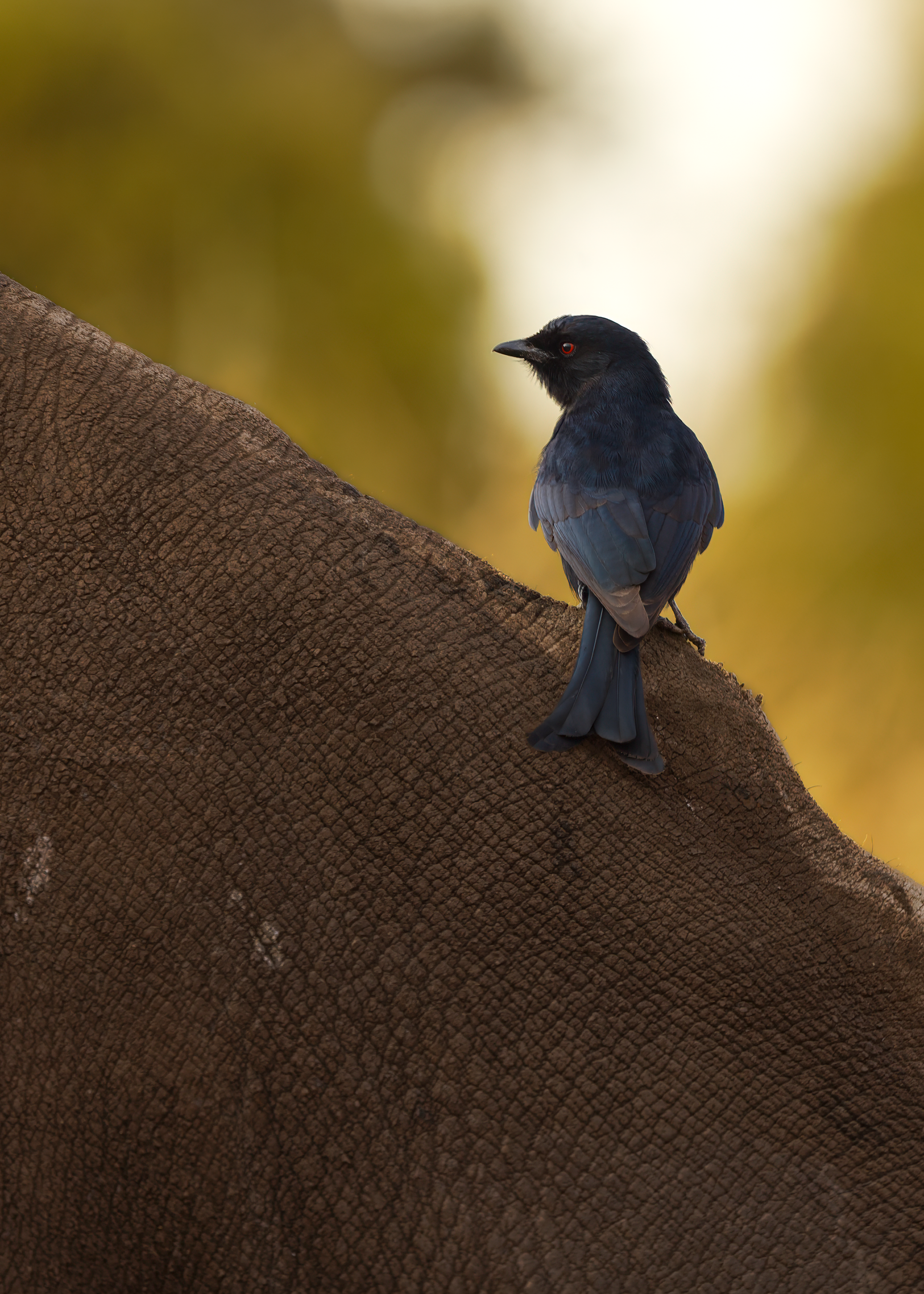 To mitigate the sun and heat, the elephants of Tsavo bathe in a black mud and then throw sand on their bodies as they dry. Depending on the iron content and other properties of the sand, the color varies widely.