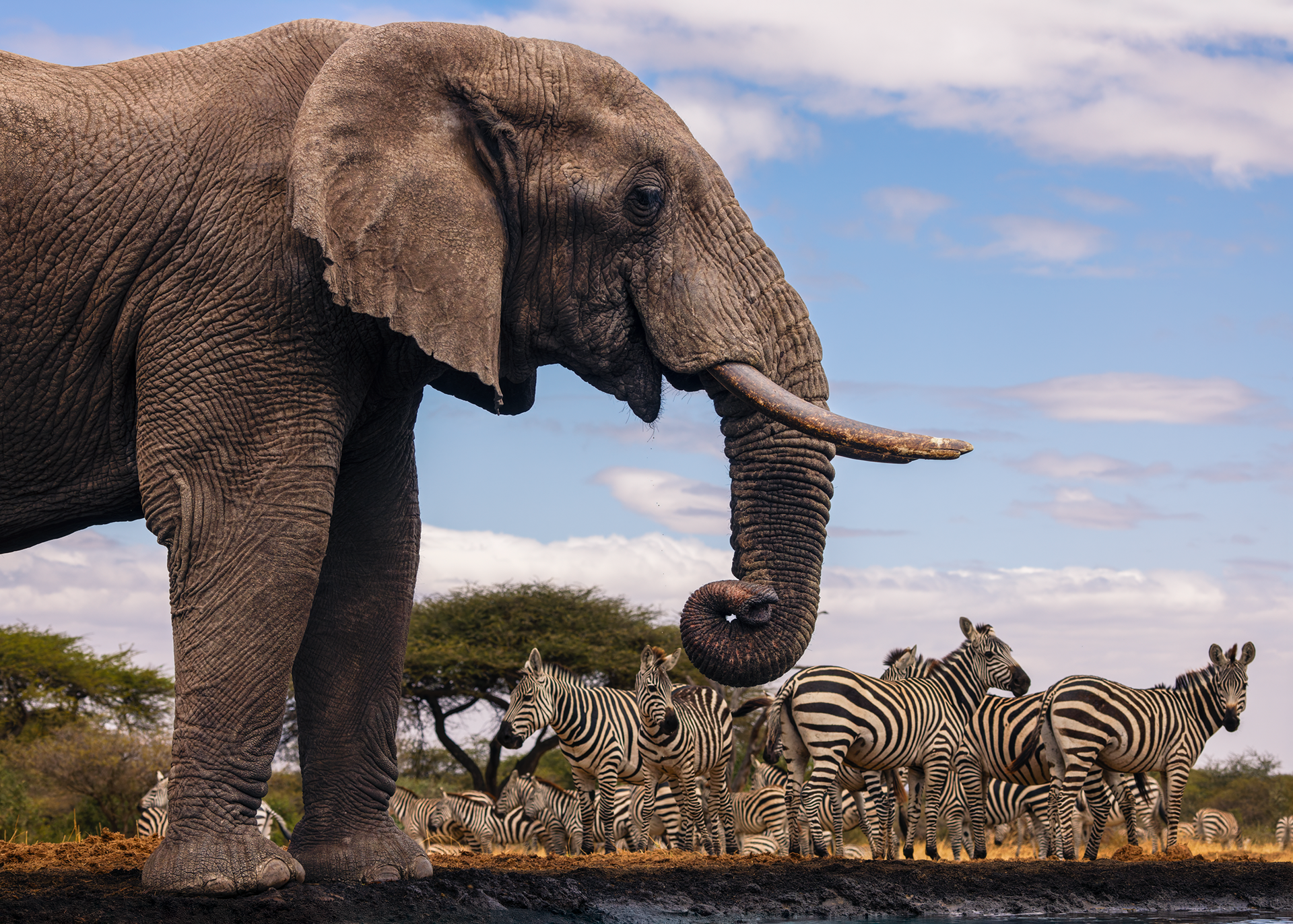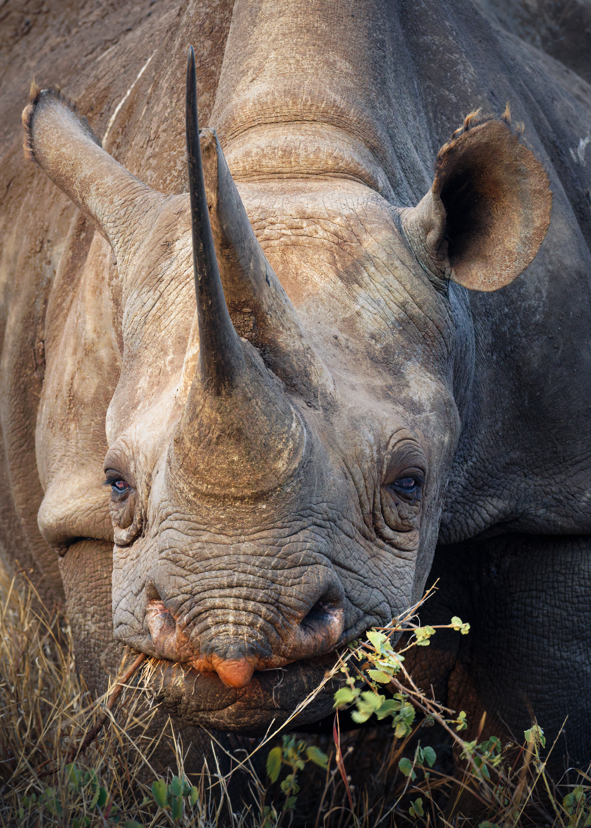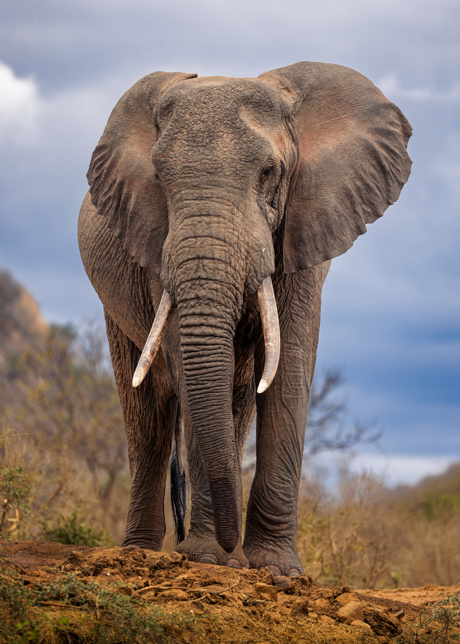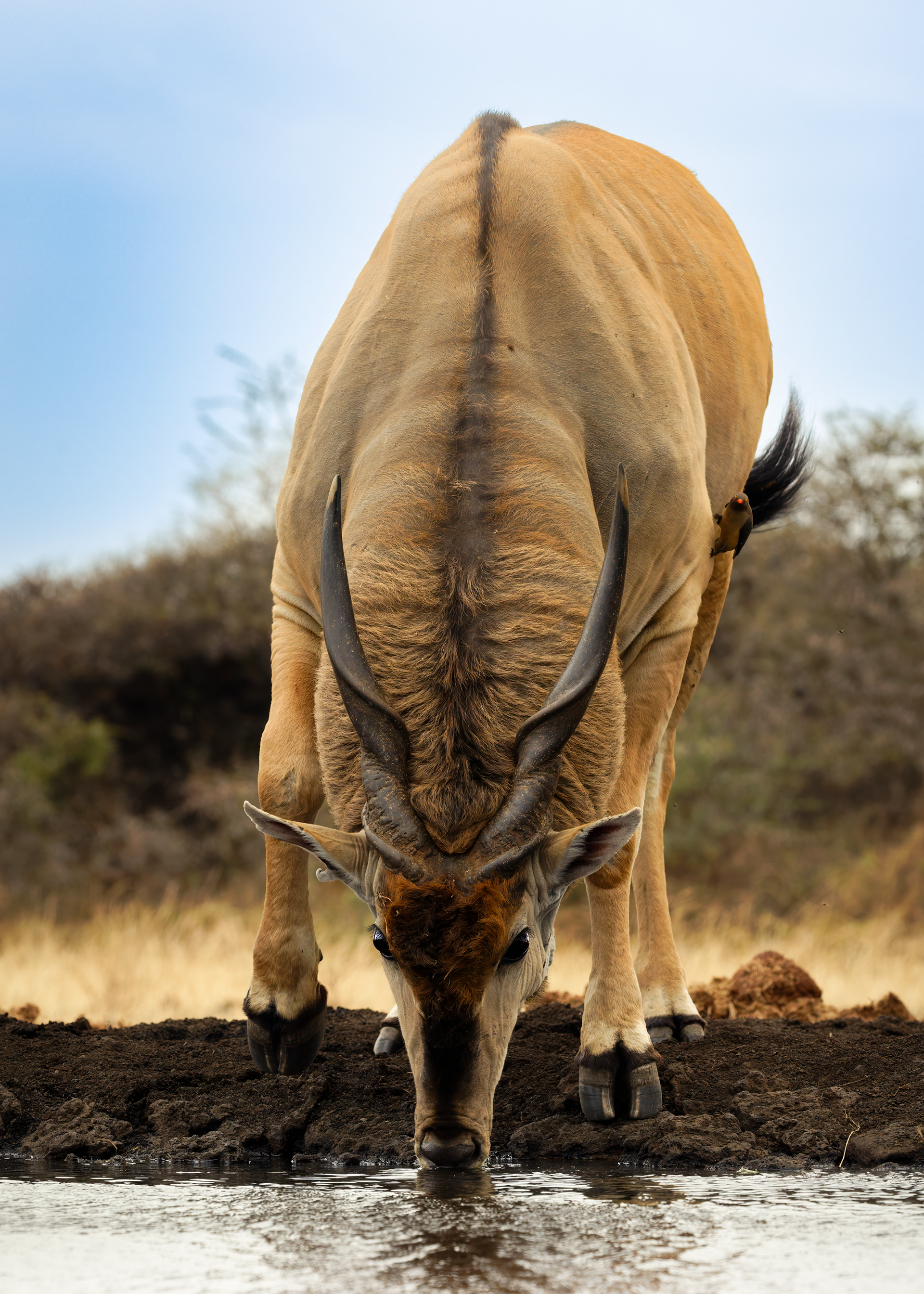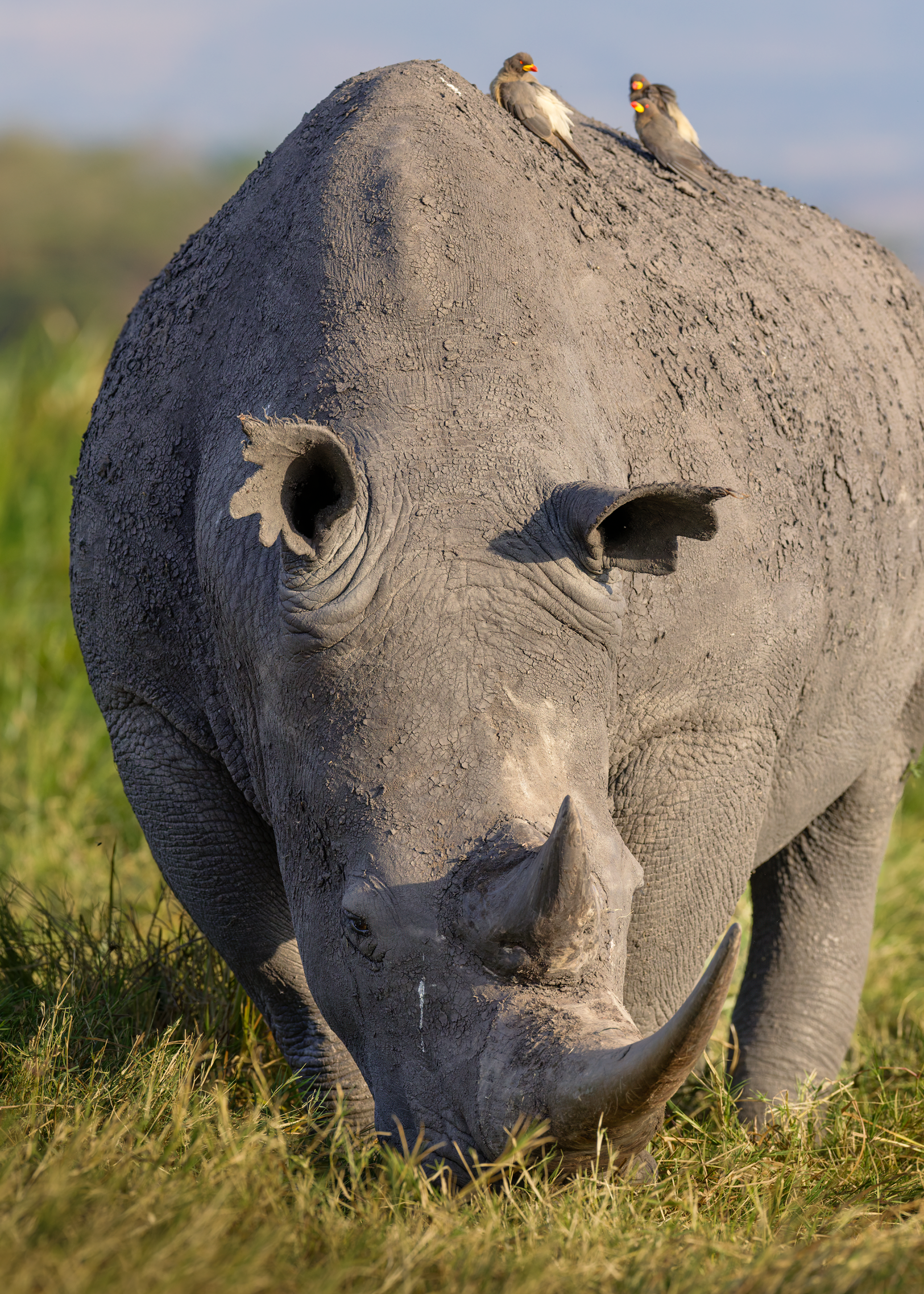 To mitigate the sun and heat, the elephants of Tsavo bathe in a black mud and then throw sand on their bodies as they dry. Depending on the iron content and other properties of the sand, the color varies widely.