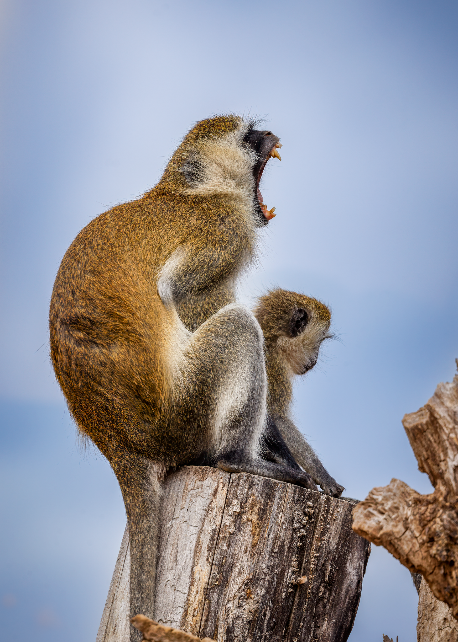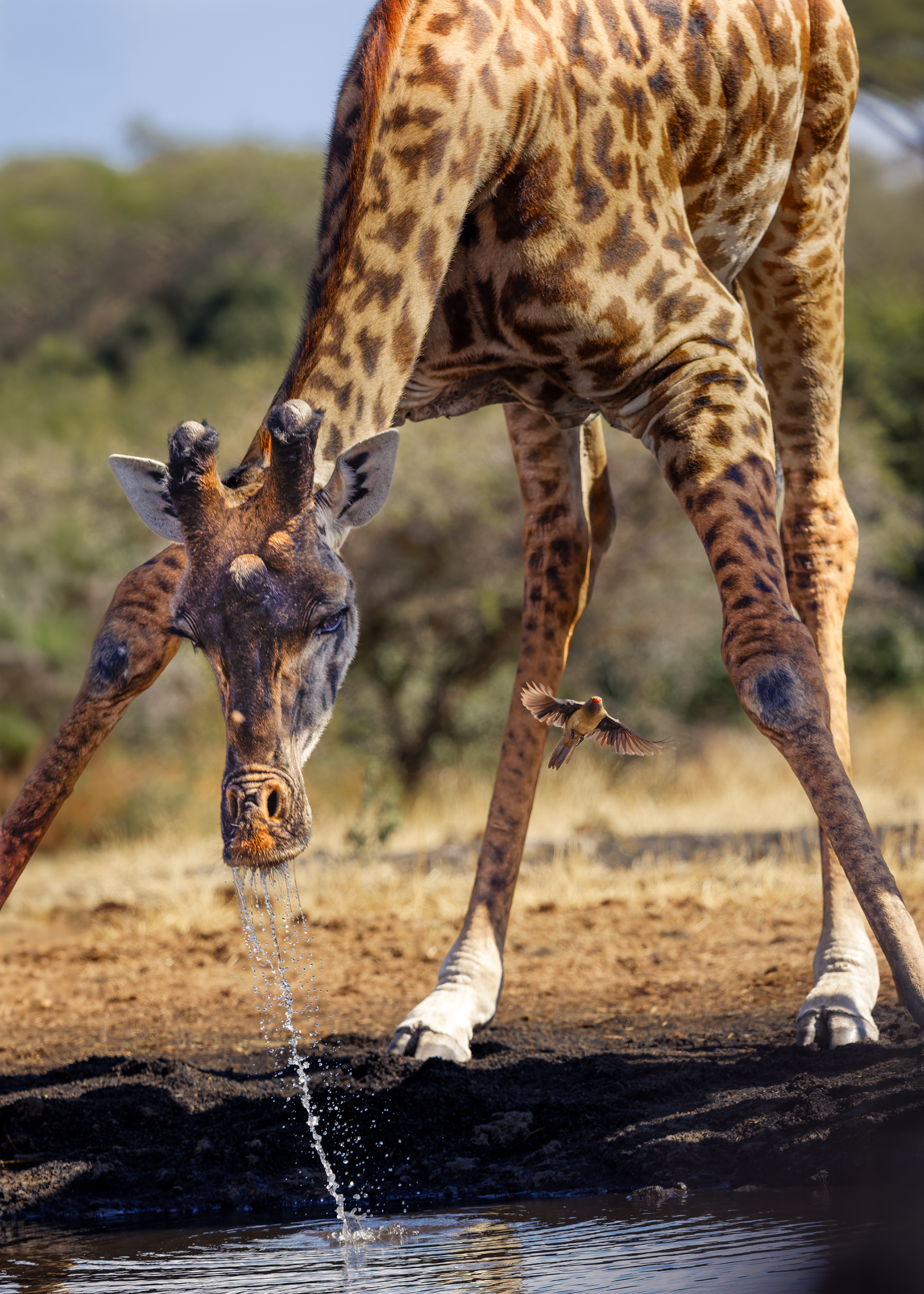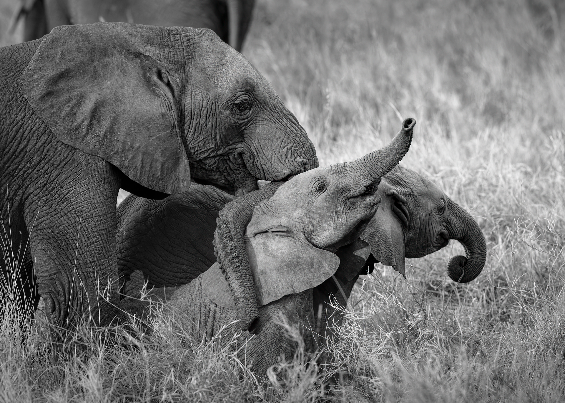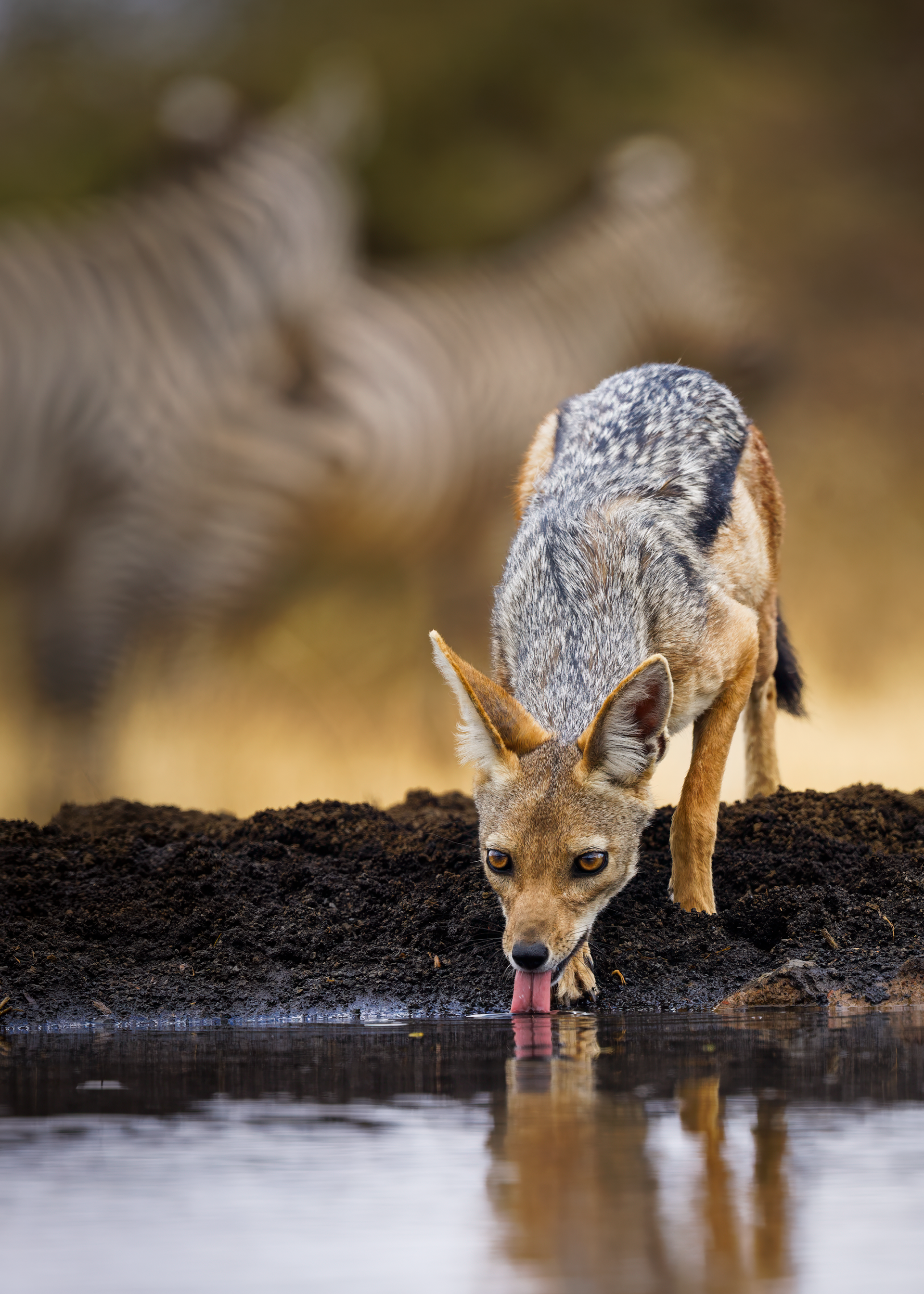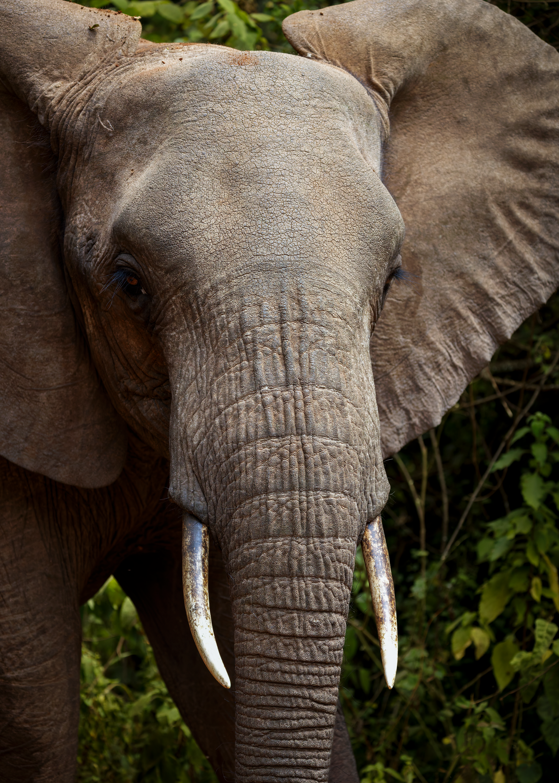 To mitigate the sun and heat, the elephants of Tsavo bathe in a black mud and then throw sand on their bodies as they dry. Depending on the iron content and other properties of the sand, the color varies widely.